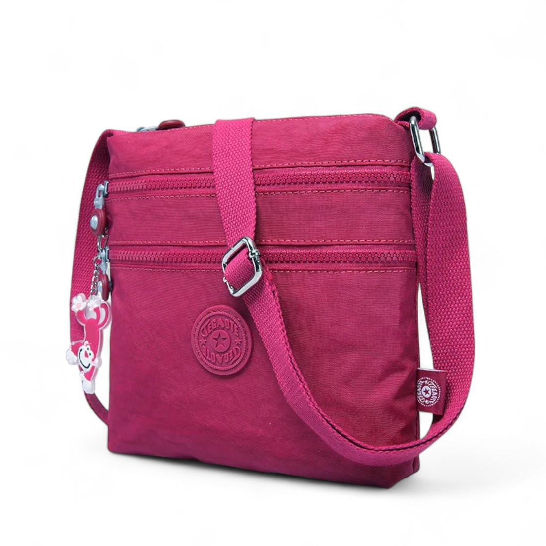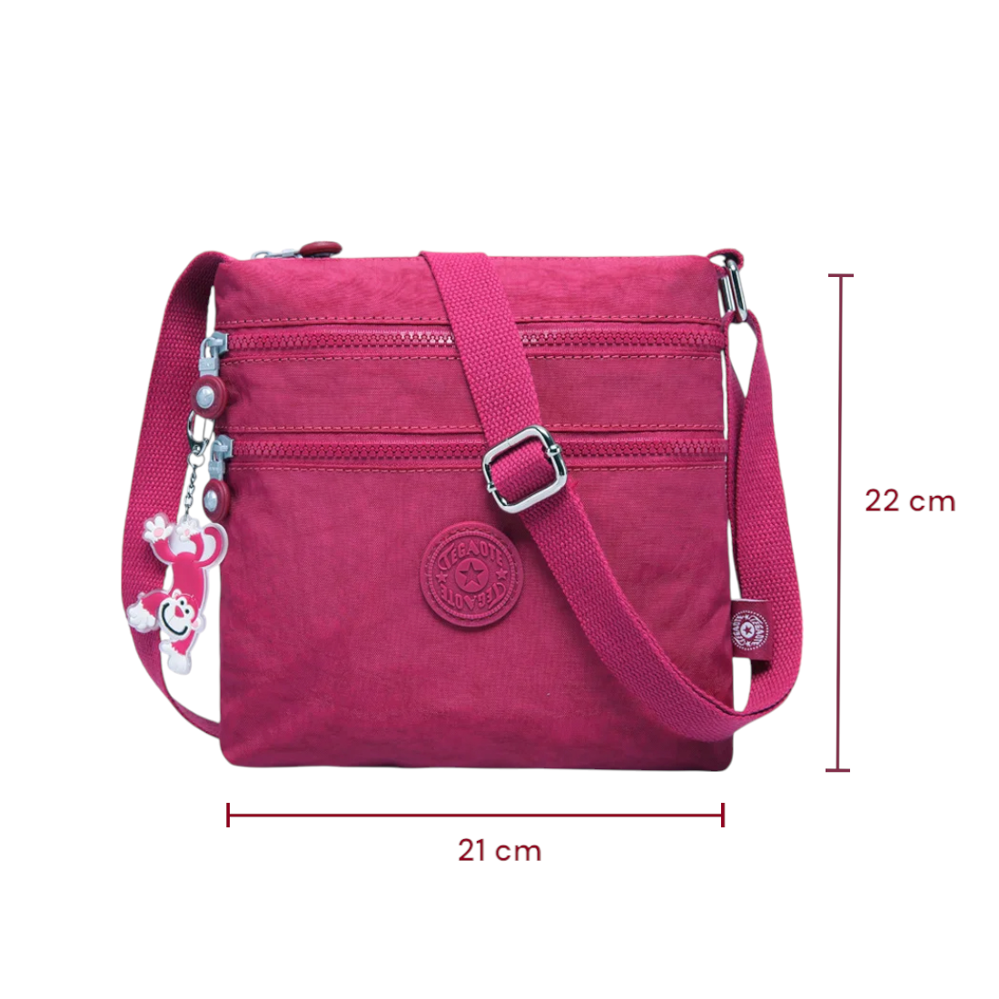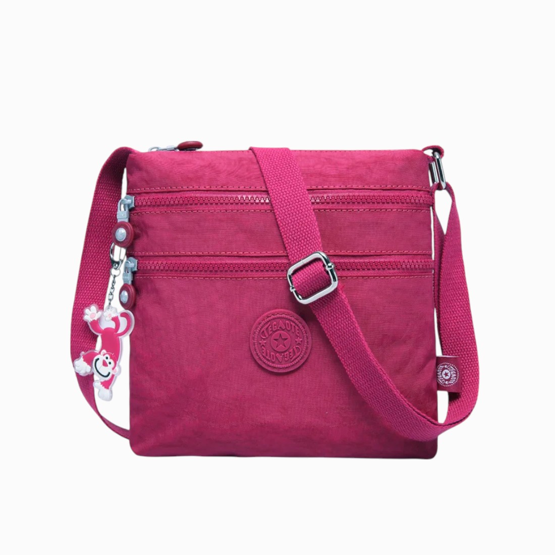 Ce sac bandoulière assume pleinement sa teinte rose foncé audacieuse, parfaite pour ajouter une touche de couleur à toutes vos tenues. Il s’accorde aussi bien avec un look casual qu’un style plus soigné.