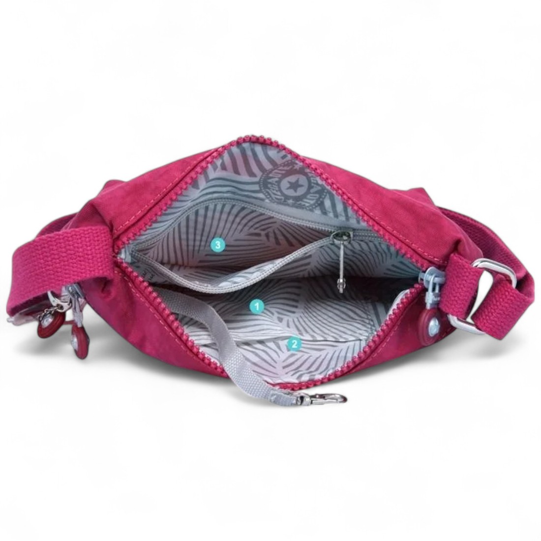 Grâce à ses trois poches extérieures zippées et son compartiment principal bien agencé, ce cartable rose foncé offre un rangement astucieux. Vous y glisserez portefeuille, clés, téléphone, petit carnet, maquillage ou écouteurs sans jamais perdre de temps à chercher.
