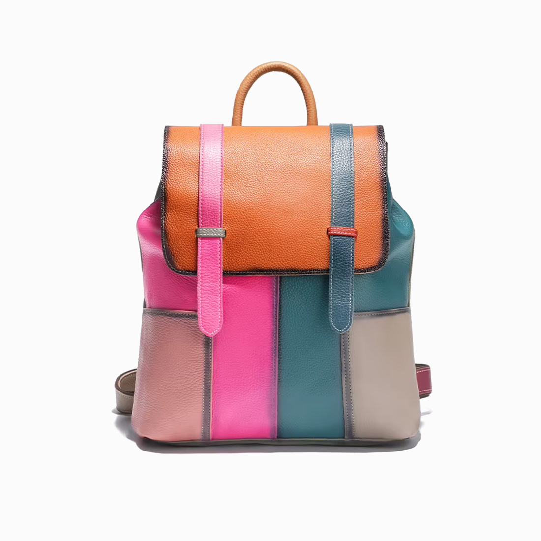 Cartable sac à dos en cuir multicolore femme