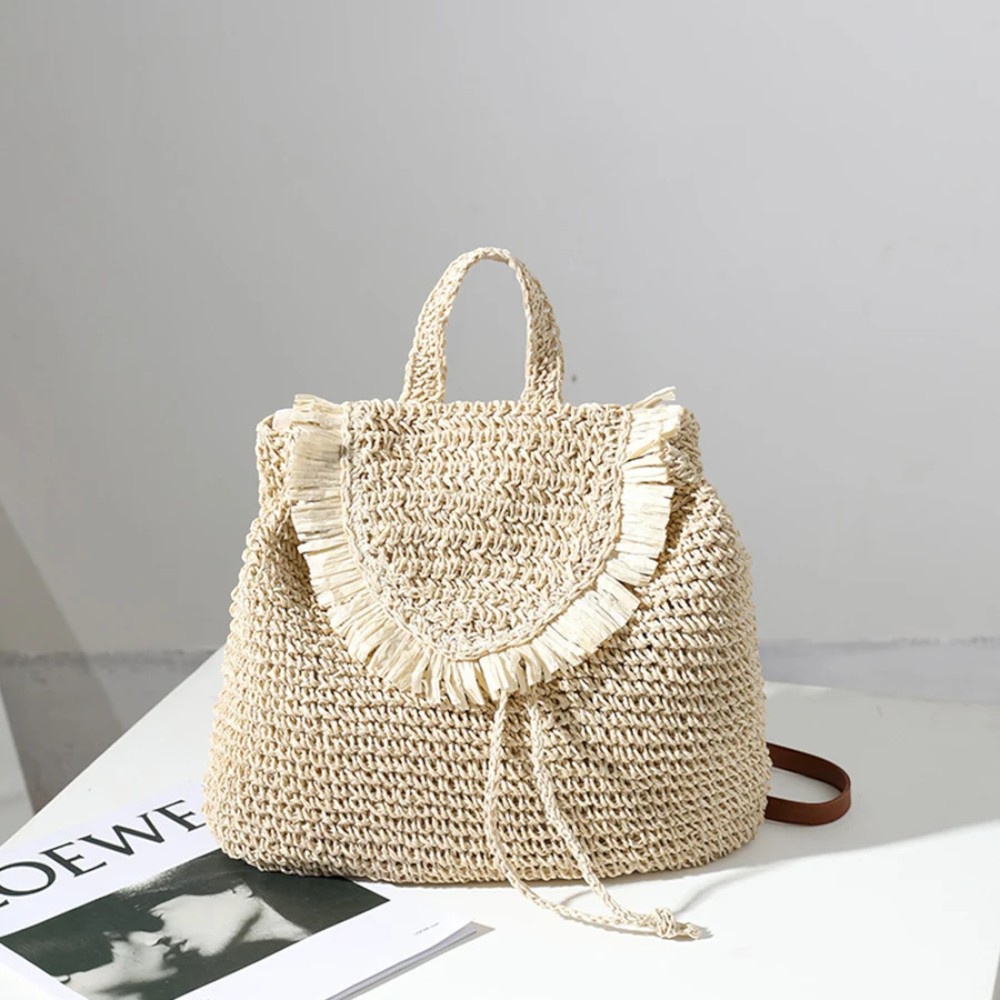 Ce cartable paille tressée femme avec rabat à franges est le compagnon idéal pour vos sorties estivales. Léger, doublé et pratique, il combine élégance naturelle et confort quotidien. Son grand compartiment, sa poche intérieure et ses bretelles réglables en font un accessoire bohème aussi fonctionnel que stylé.
