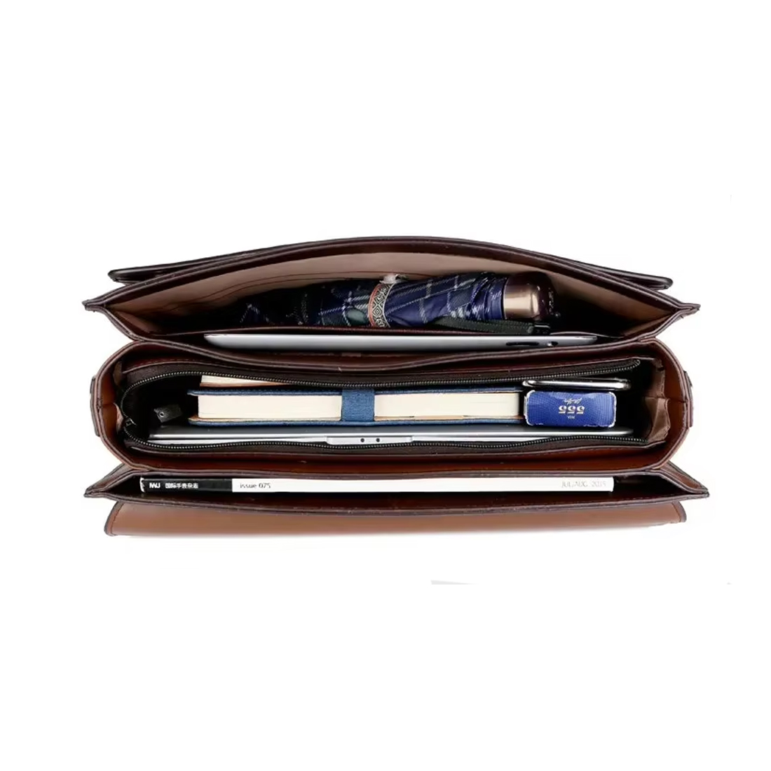 À l’intérieur de notre sacoche, tout est pensé pour vous simplifier la vie. Ce cartable peut accueillir un ordinateur jusqu’à 14 pouces et dispose de plusieurs compartiments de rangement. Des poches dédiées à vos essentiels : documents, stylos, téléphone, chargeurs.