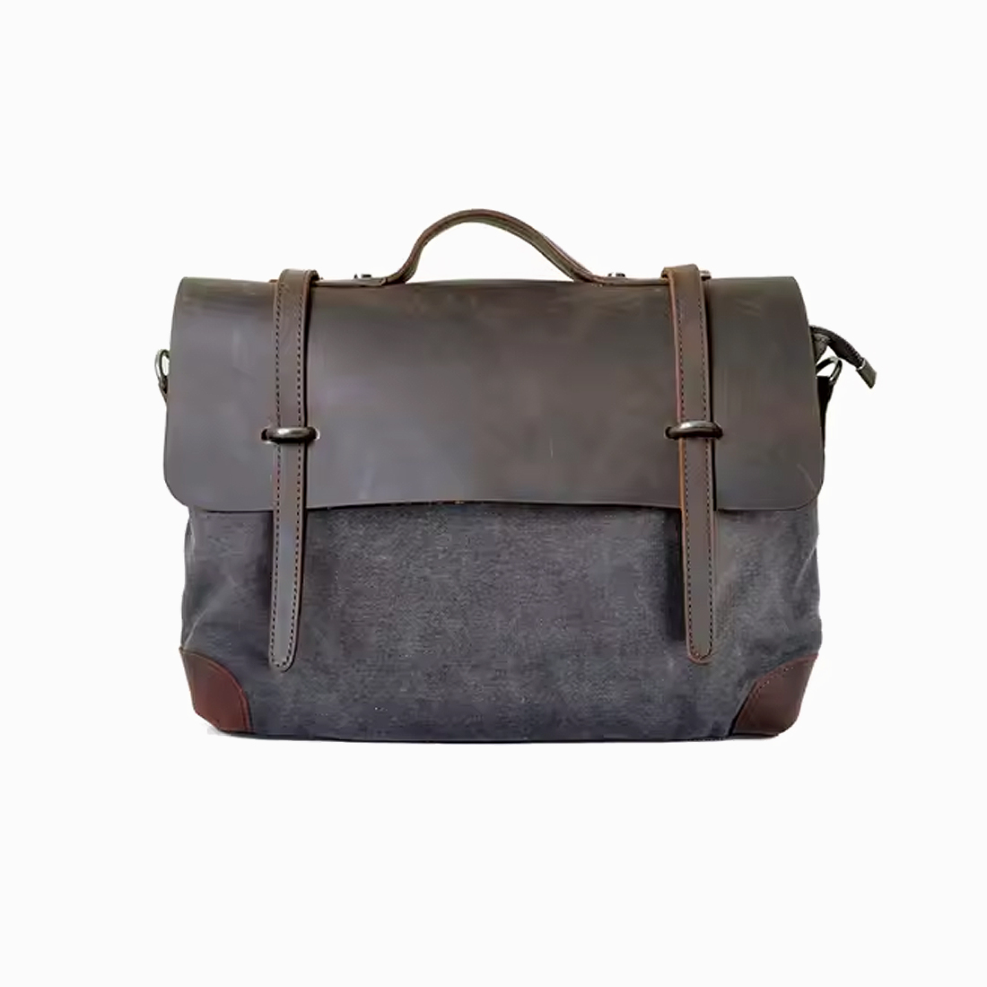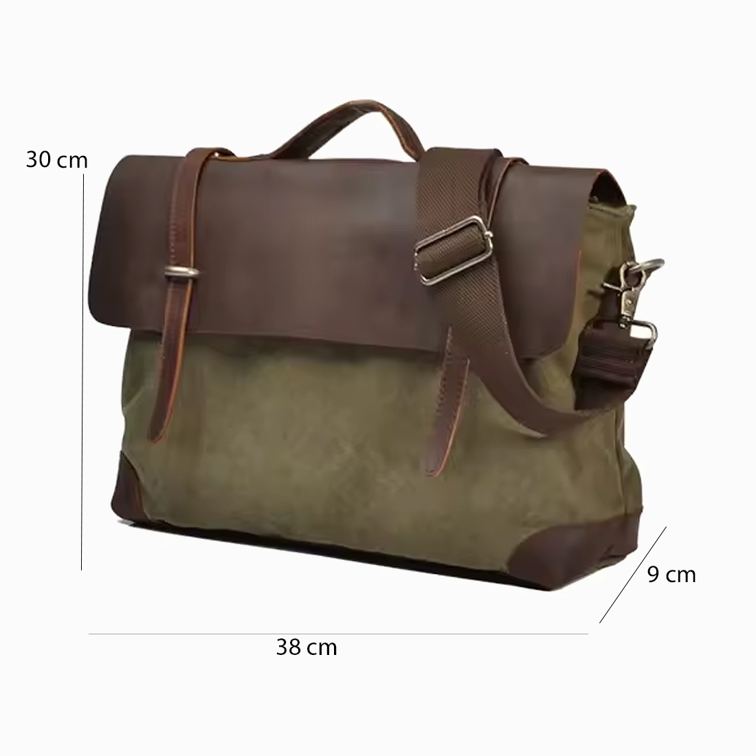 Le contraste entre la toile brute et le cuir lisse lui donne un cachet unique, tout en restant sobre et facile à assortir à votre garde-robe. Que vous portiez un costume ou une tenue plus décontractée, ce cartable s’adapte à votre style et vous accompagne avec élégance.
