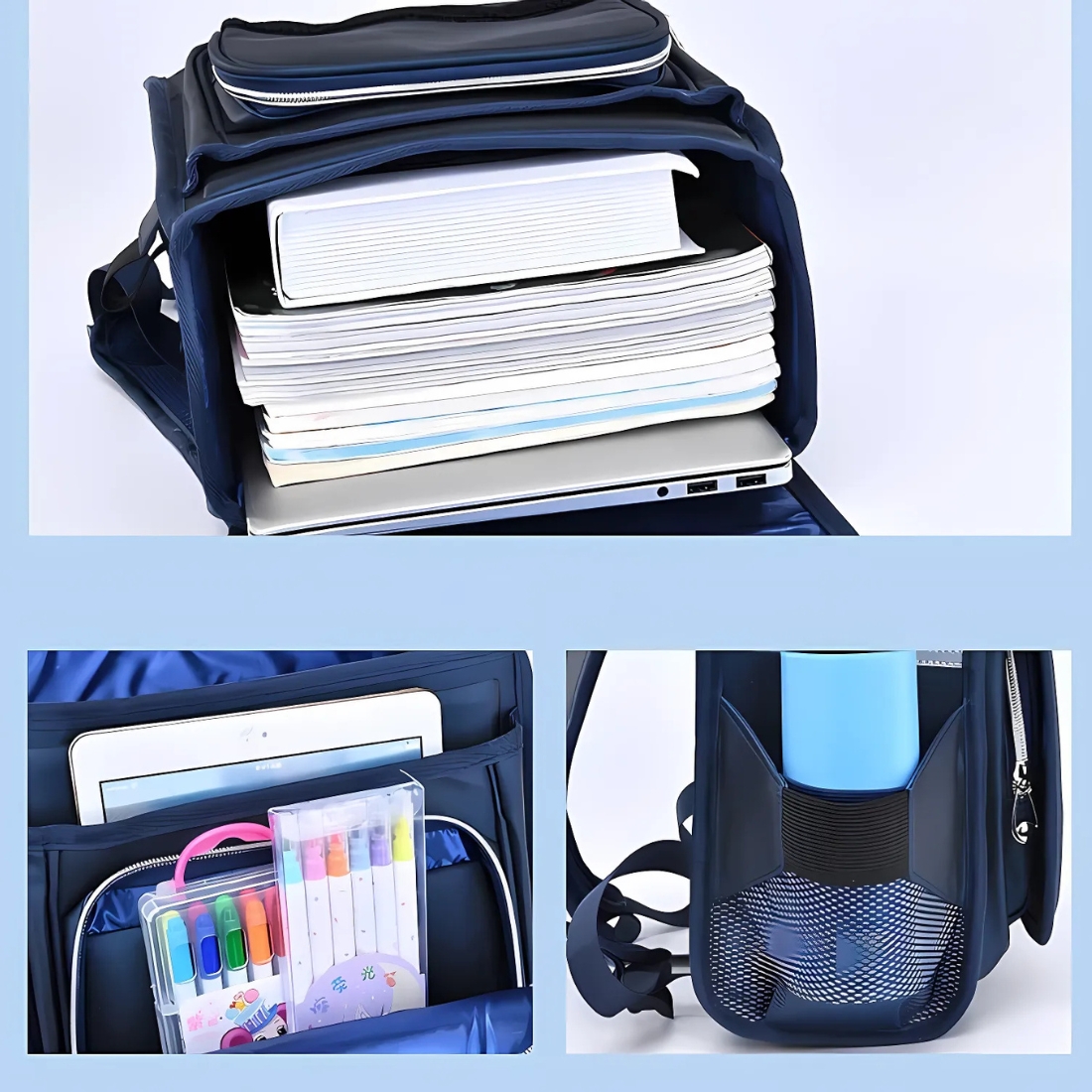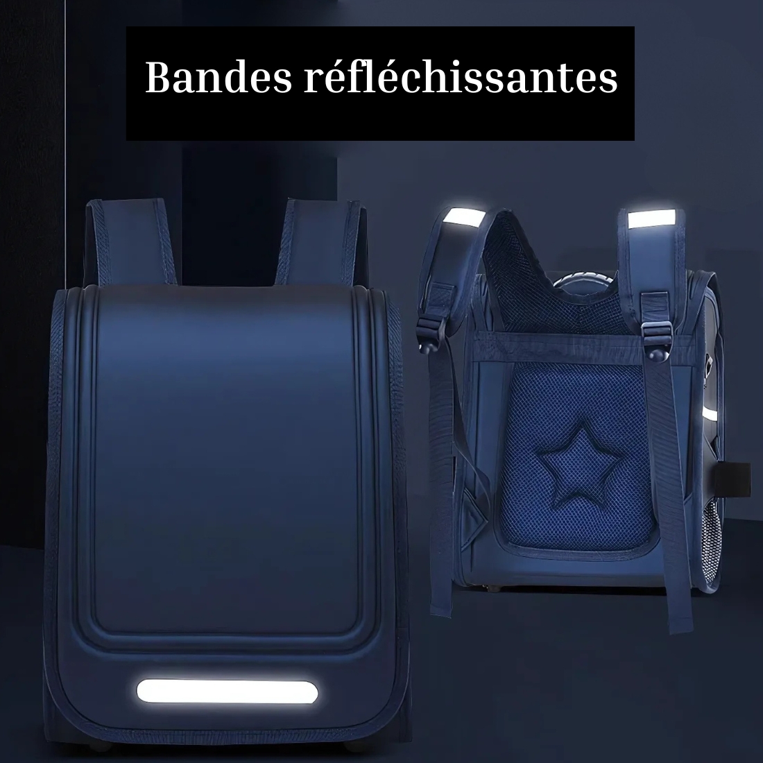 Grâce à ce matériau technique, livres, cahiers et objets électroniques restent au sec, quel que soit le temps. Sans oublier les bandes réfléchissantes intégrées qui assurent une visibilité renforcée à la tombée de la nuit, pour une sécurité maximale sur le trajet de l’école.