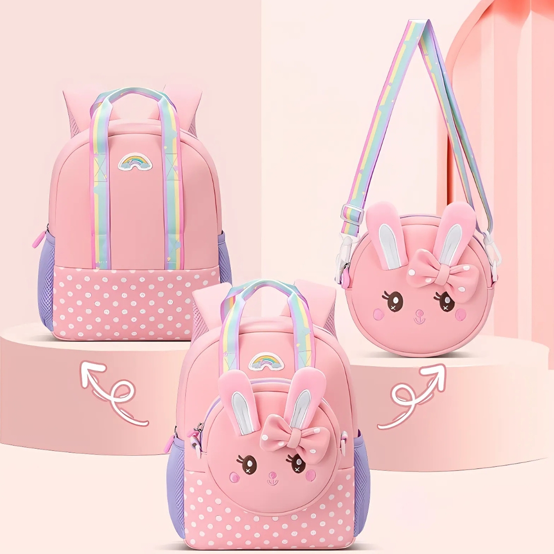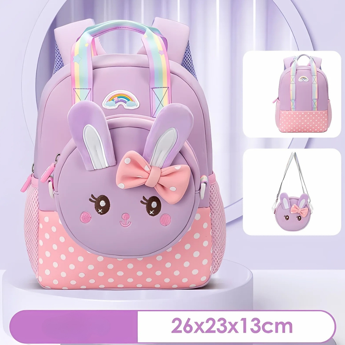 Avec son look craquant de rose ou violet, ses oreilles toutes douces et son petit sac assorti, ce cartable kawaii petit lapin va faire fondre le cœur des enfants… et rassurer les parents ! Pratique, sécurisé et modulable, c’est le compagnon idéal pour la maternelle.