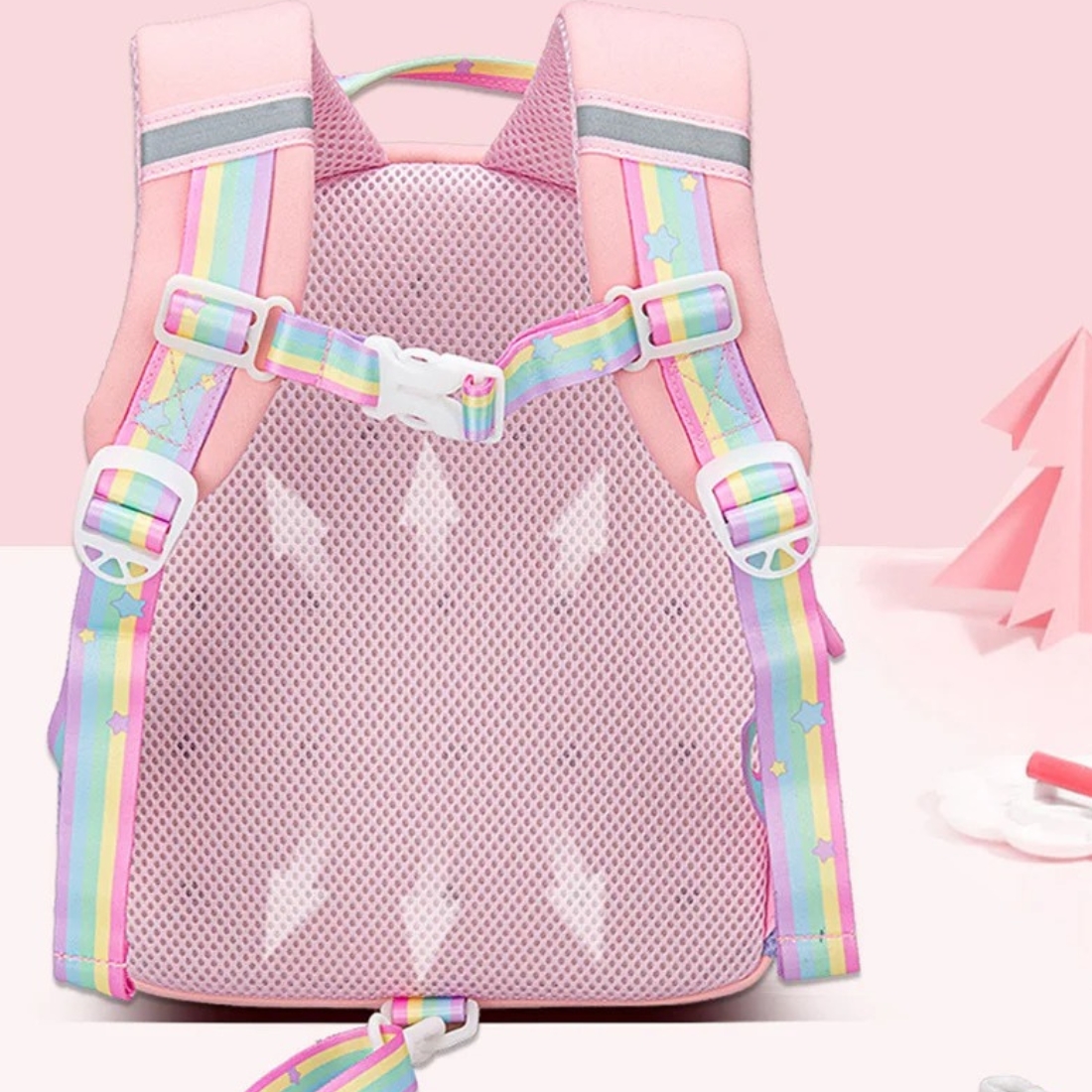 Grâce à ses finitions en tissu pelucheux, son arc-en-ciel et sa bouille de lapin 3D à croquer, ce modèle donne envie de lui faire un câlin. C’est un accessoire qui va bien au-delà du simple sac : il accompagne, rassure, et rend les matins d’école plus joyeux.