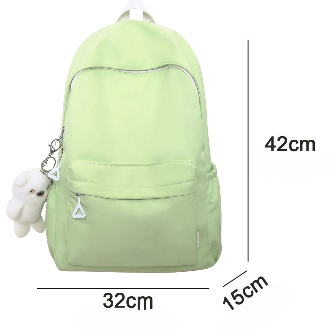 Dès le premier regard, ce cartable vert pastel kawaii avec une peluche ourson apporte une touche de tendresse au quotidien. Sa teinte douce apaise, tandis que la petite peluche accrochée à la fermeture invite à la rêverie.