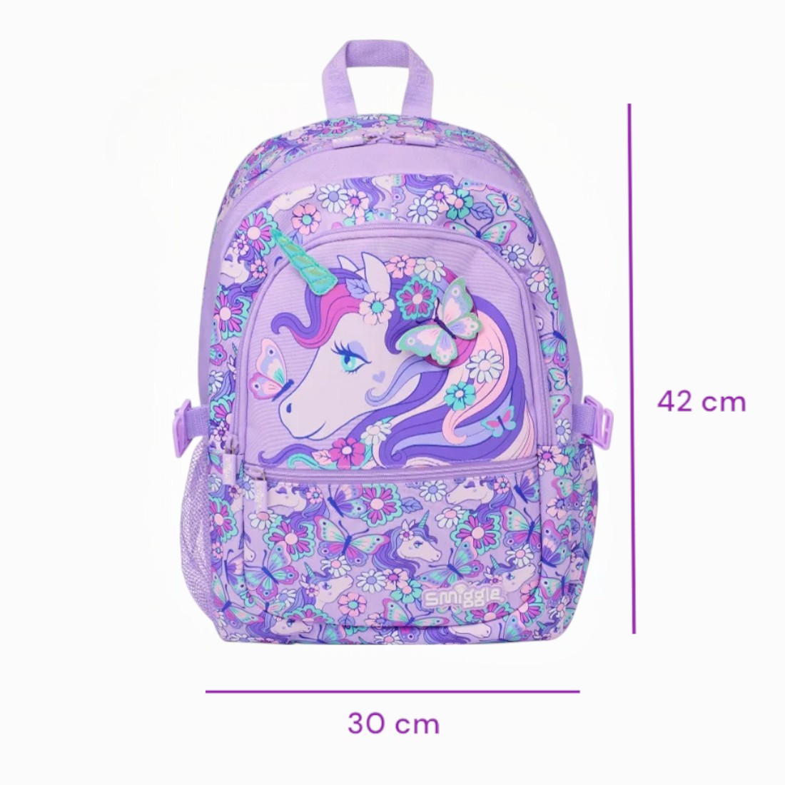 Avec sa teinte lavande pleine de douceur et son grand motif de licorne entourée de papillons et de fleurs, ce cartable fille violet avec licorne et détails féériques transforme chaque rentrée en aventure enchantée. Les paillettes, les reliefs et les couleurs pastel plaisent à toutes les filles qui aiment les choses poétiques et enchantées.