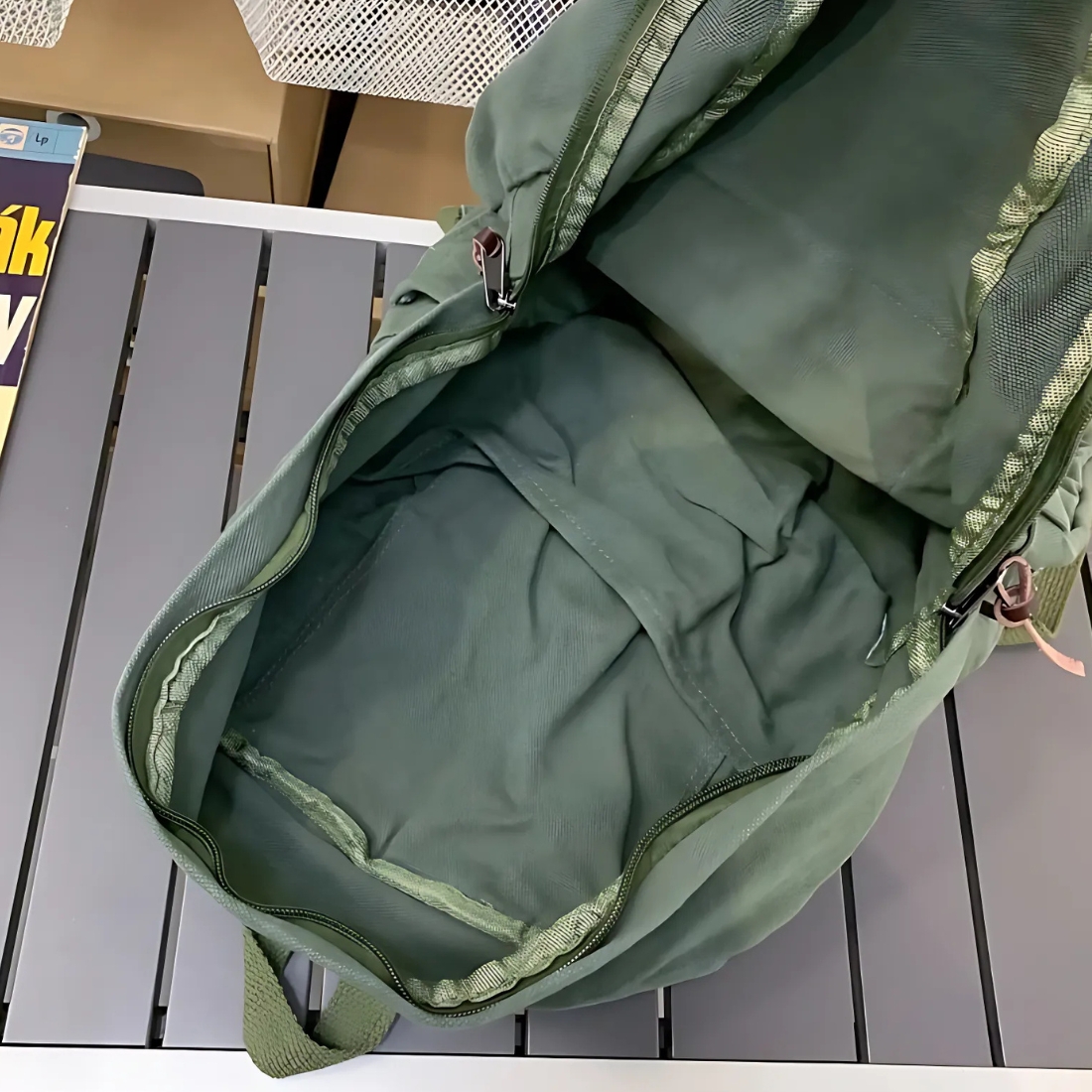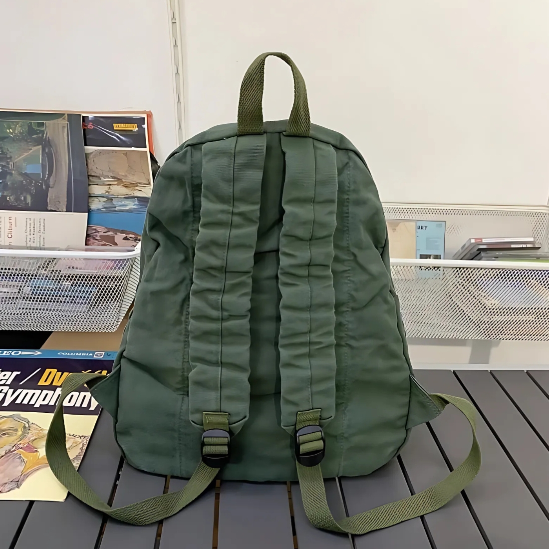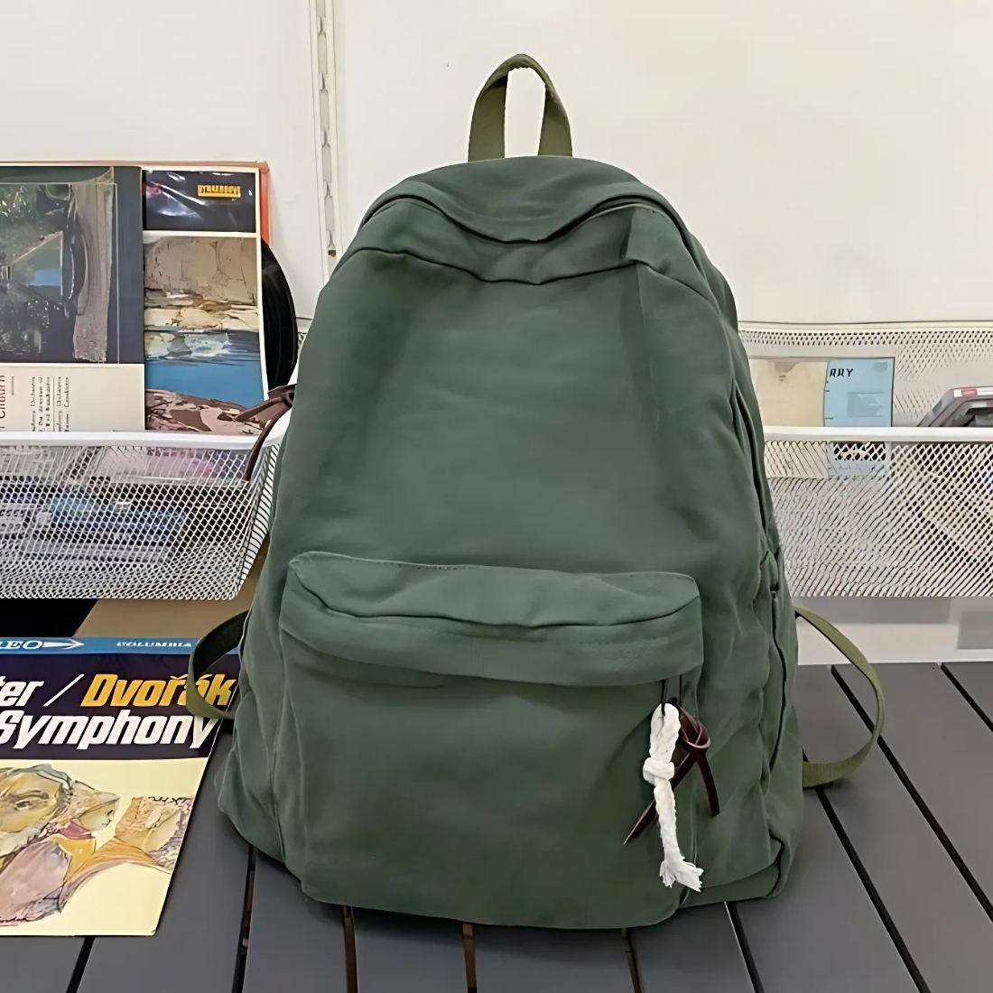 Cartable lycée en coton vert