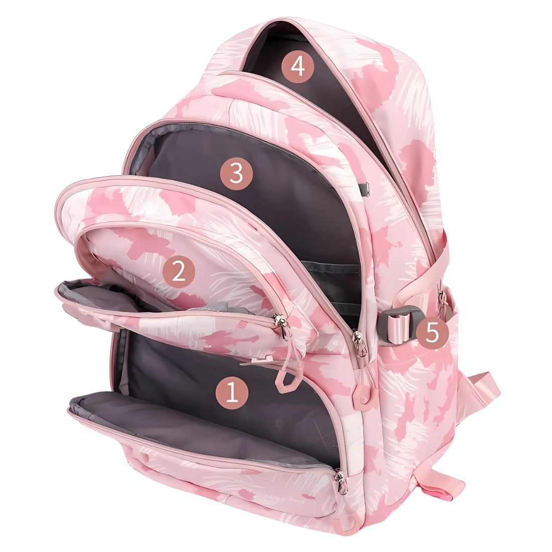 L’intérieur du cartable est un modèle d’ingéniosité : cinq compartiments bien pensés permettent de ranger cahiers, classeurs, trousse et goûter.