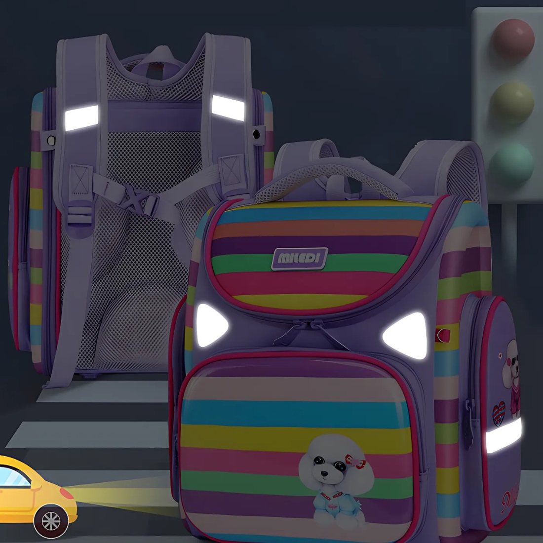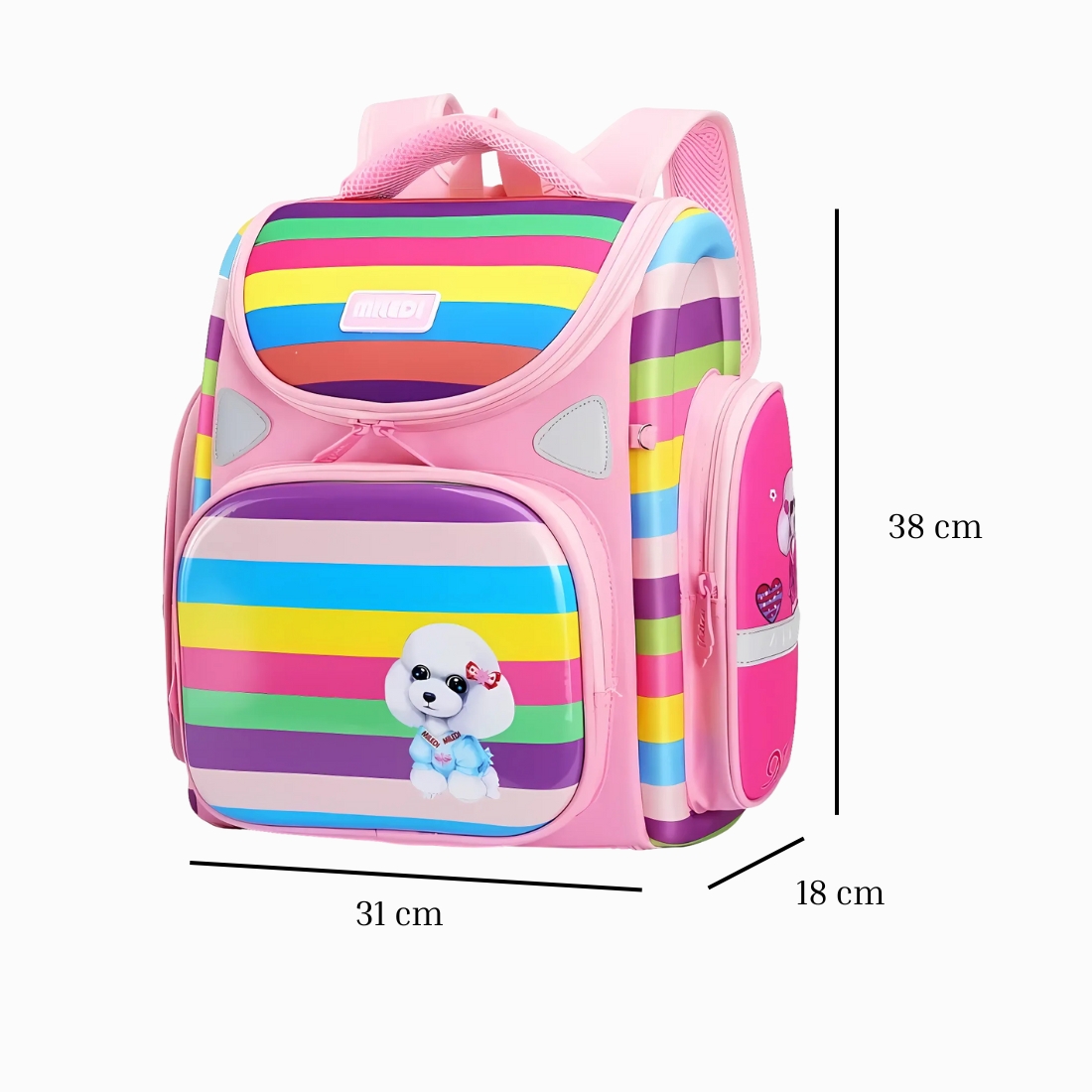 Le petit chien imprimé ajoute une note tendre et affective, parfait pour donner confiance à votre enfant. Plusieurs coloris sont disponibles, de quoi ravir toutes les personnalités. Ce cartable reflète l’univers joyeux de l’enfance et valorise les goûts de votre fille.