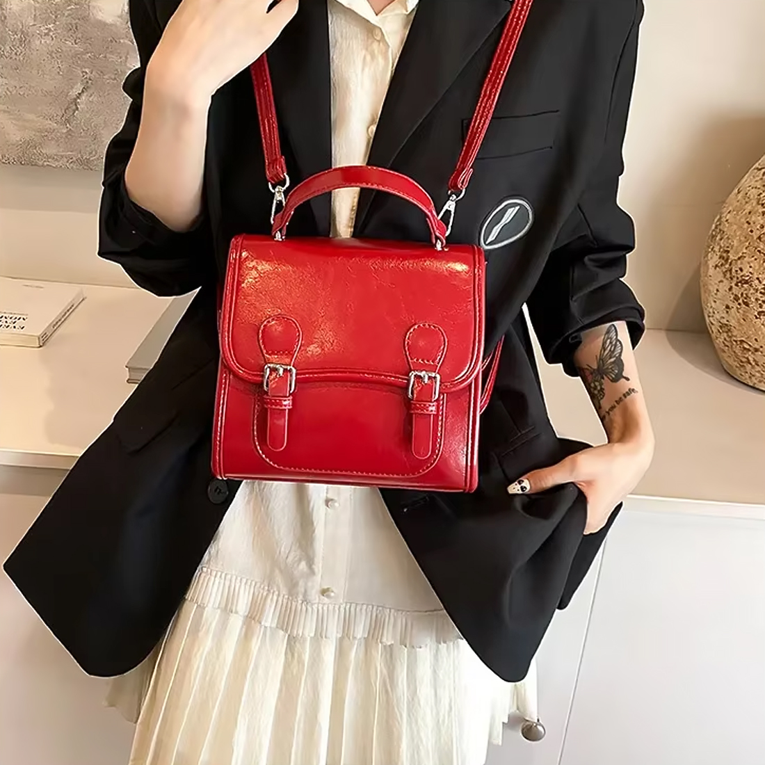Cartable sac à main à dos en cuir synthétique vernis
