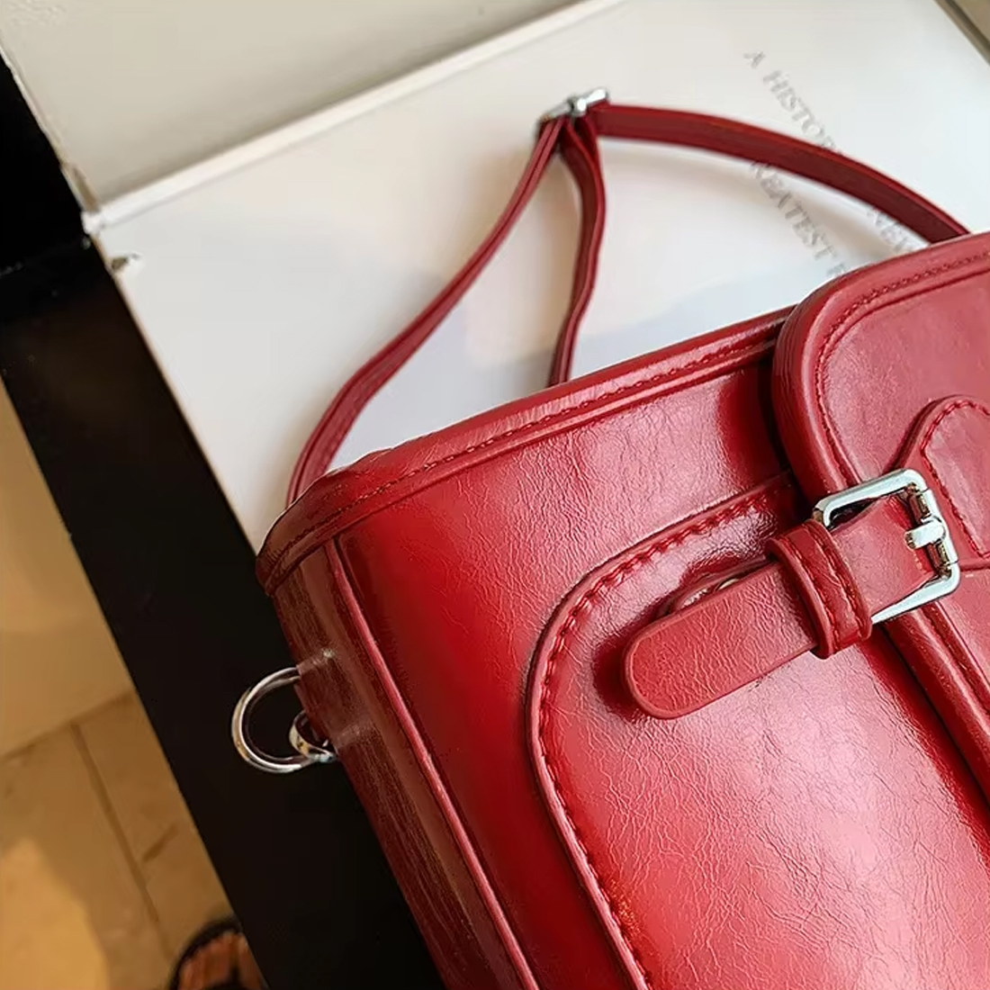 Ce sac est conçu pour durer, vous suivre partout. Solide et résistant grâce à son cuir synthétique de qualité, il garde sa forme et son éclat, même après de longues journées. Le cuir synthétique vernis de se sac apporte une touche sophistiquée tout en étant facile d’entretien.