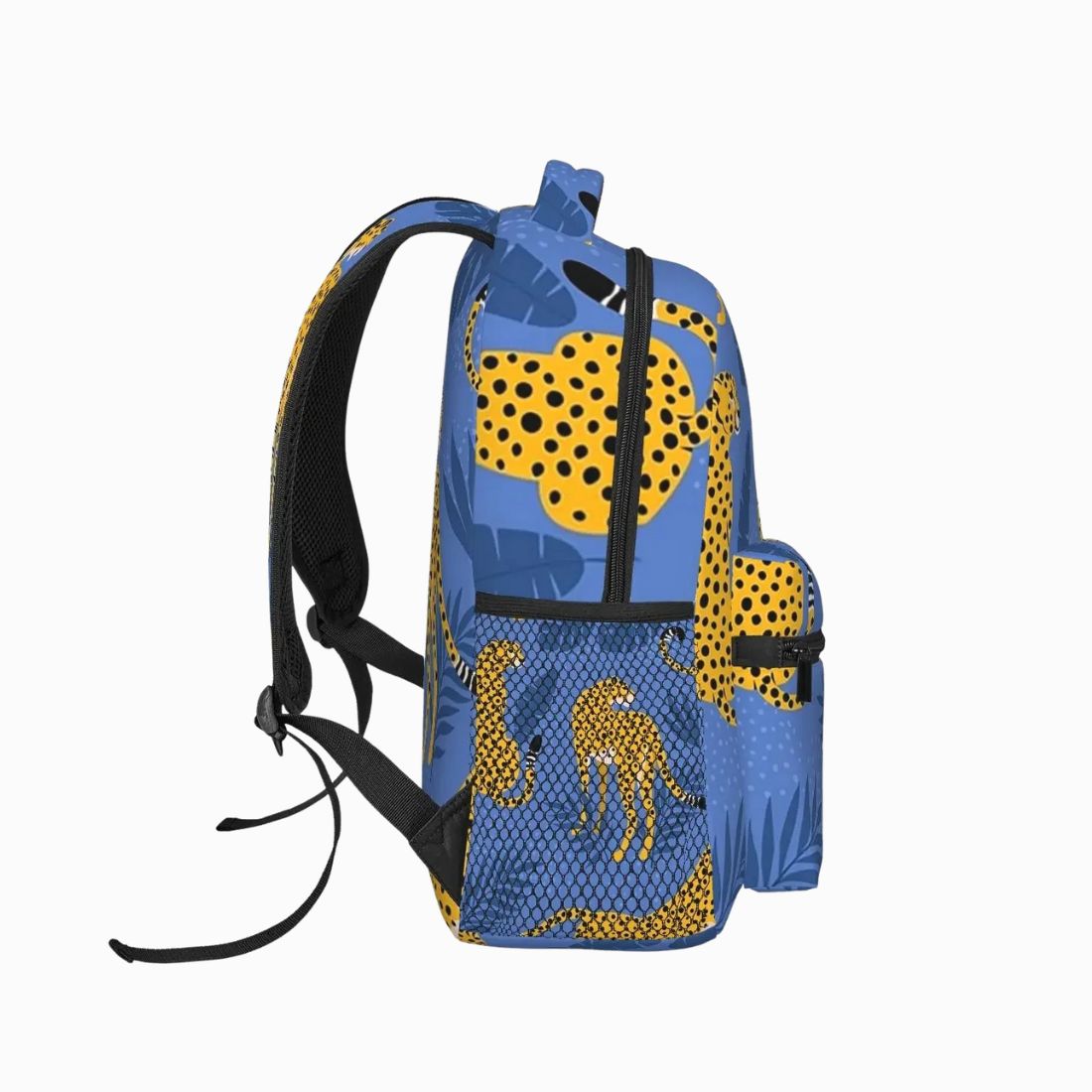 Cartable sac à dos bleu motif guépard