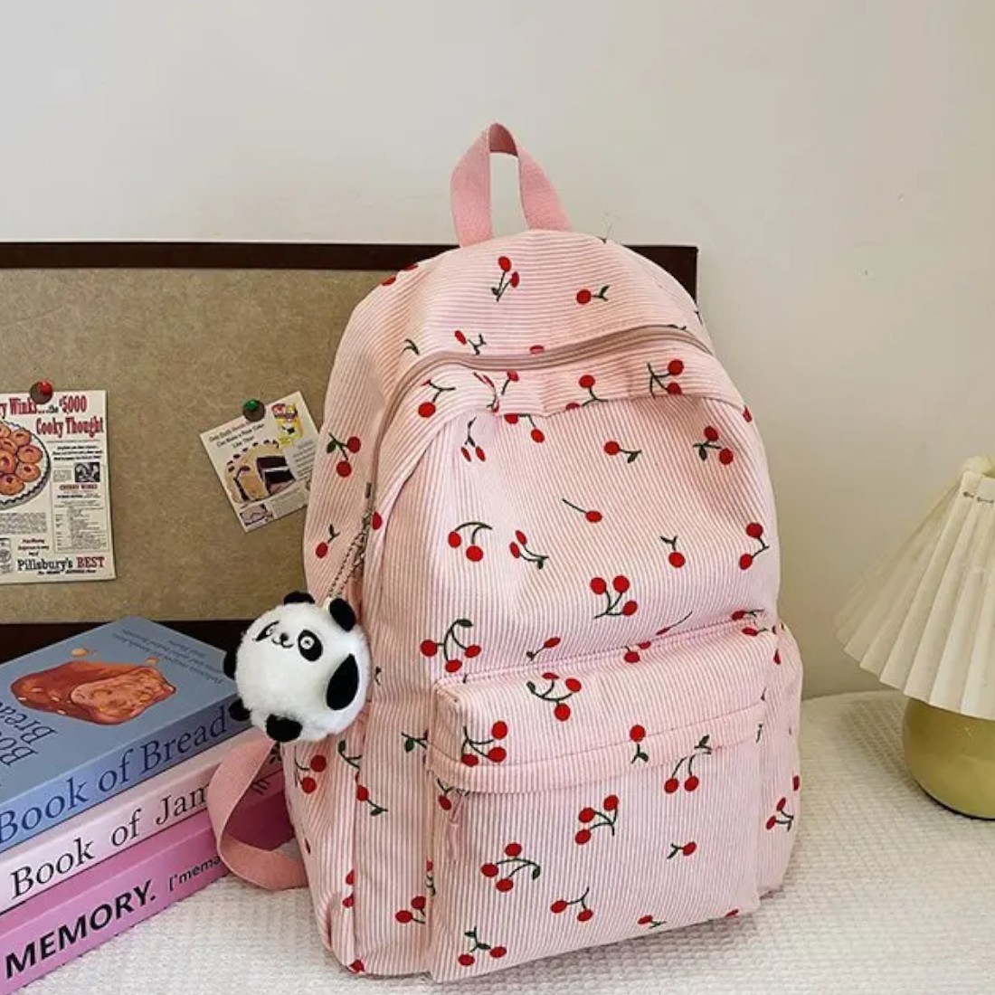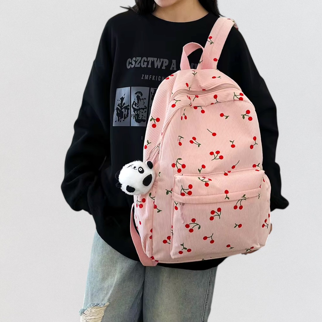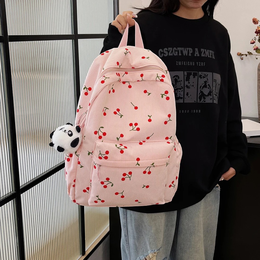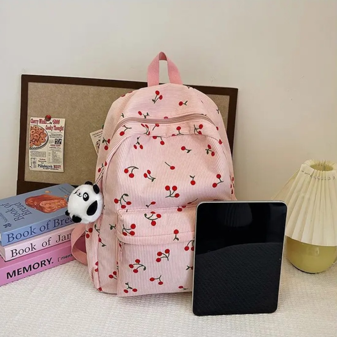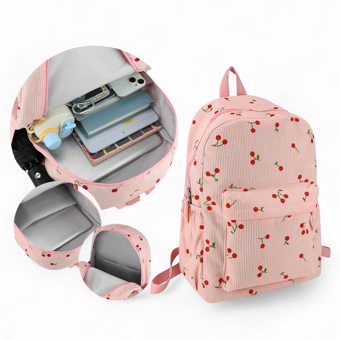 Ce cartable sac à dos rose cerise en velours côtelé a été pensé pour accompagner les journées chargées avec style et douceur. Son tissu en velours côtelé donne un côté rétro irrésistible, tandis que les petites cerise ajoutent une touche de fantaisie pleine de charme.