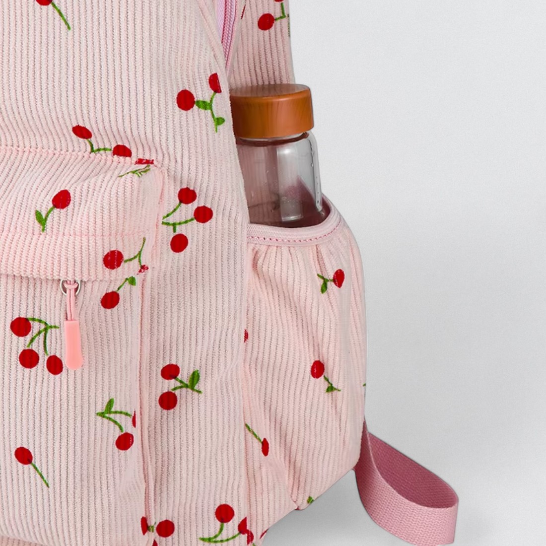 Avec son tissu en velours côtelé et ses petites cerises brodées, le cartable sac à dos rose cerise en velours côtelé est à la fois original, spacieux et léger. Il accompagne vos journées d’école, de travail ou de sorties avec une note rétro pleine de charme.